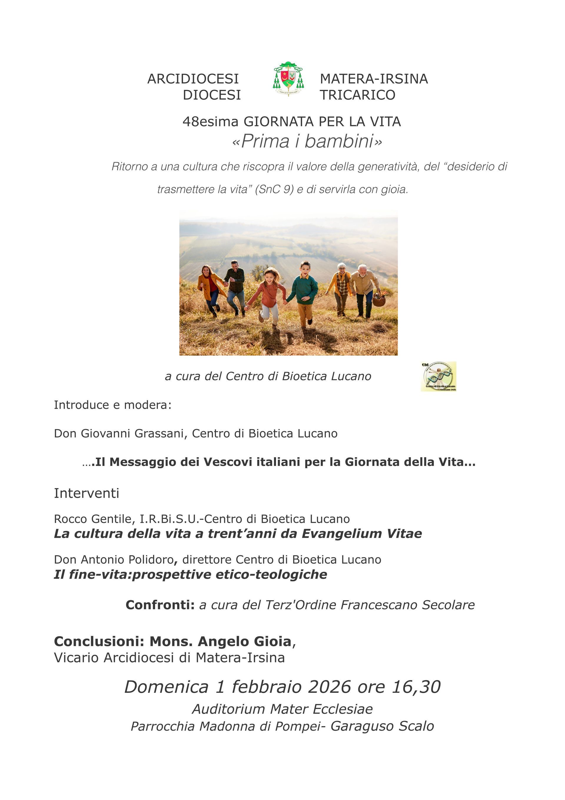 L’idea che si concretizzava nel 2001 ad opera di un gruppo di laici di un Centro culturale che si occupasse di Bioetica, che si concretizzava nella Diocesi di Tricarico dopo un importante incontro tenuto da quello che era considerato il più esperto bioeticista italiano, Mons. Elio Sgreccia, dell’Università Cattolica del Sacro Cuore di Roma, era quasi una sfida. Infatti, di problematiche che si aprivano a livello scientifico, che interpellavano la coscienza delle comunità cristiane, diventano non solo sempre più numerose ma anche richiedevano competenza e studio e ricerca. Certamente, nei contesti piccoli ci vuole molta più forza e spesso la fatica è più grande, ma quel gruppo che si dava uno statuto all’interno della diocesi di Tricarico e che anche gli altri Vescovi delle sei diocesi della Basilicata riconoscevano come strumento di riferimento per i chiarimenti su questioni particolari ma anche di proposta di formazione e di approfondimento di tematiche emergenti per sacerdoti e per laici, non da ultimo per docenti della scuola e fino ai giovani e ai gruppi ecclesiali tutti. Si era tra le primissime regioni a realizzare un punto di incontro e di crescita culturale, nell’interscambio anche di opinioni differenti e all’insegna della multidisciplinarità (aderirono medici, docenti, avvocati) e si provò a catalizzare anche quanti in passato avevano nella regione tutta tentato una formazione più approfondita sugli argomenti sui quali spesso si rimaneva dubbiosi poiché si necessitava di approfondimenti specifici. Da questo punto di vista si può dire che proprio la Chiesa effettivamente sul territorio promuoveva la cultura per il bene più grande dell’uomo affinché nelle sue scelte fosse pienamente libero.